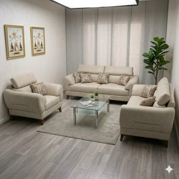 بتصميمه المتوازن وتفاصيله الناعمة، يمنح هذا الطقم إحساسًا بالفخامة دون مبالغة، ويخلق مساحة مريحة مثالية للاسترخاء واستقبال الضيوف.